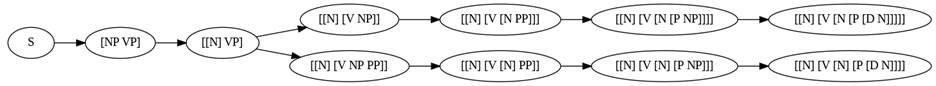 However, CFGs can also demonstrate alternative interpretations of sentences. For example, here are two ways the CFG can generate the sentence “We caught fireflies in our pajamas”